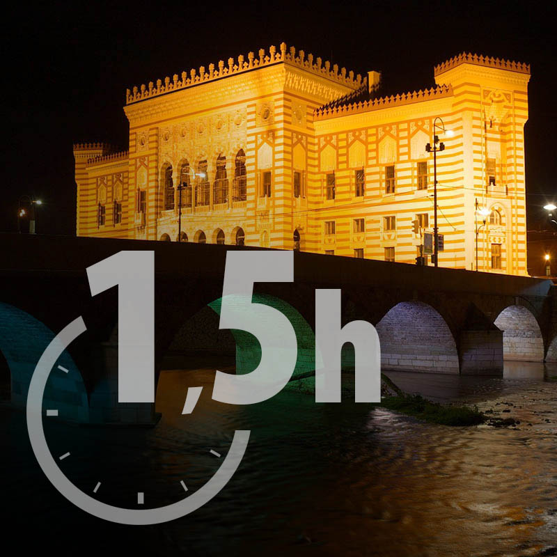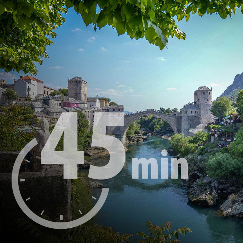 1h do Mostara i Sarajeva.